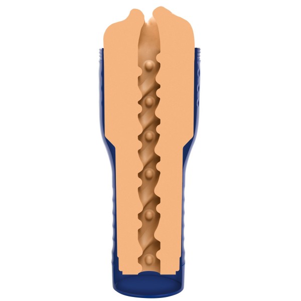 Мастурбатор помещен в стильный тубус синего цвета. Тубус имеет особенный рельеф, который позволяет надежно удерживать девайс в руке во время самых интенсивных фрикций! Тубус плотно закрывается крышкой. В основании также находится крышка, открыв которую Вы ощутите более свободные фрикции. При закрытой нижней крышке ярко ощущается посасывающий эффект!