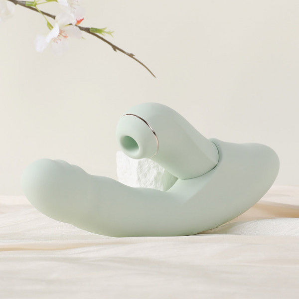 Вибратор-пульсатор + съемный вакуумный стимулятор "BeYourLover Fatima" с подогревом, мята